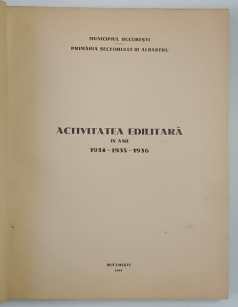 ACTIVITATEA EDILITARA , PRIMARIA SECTORULUI III ALBASTRU , 1934 - 1935 - 1936 , 1937
