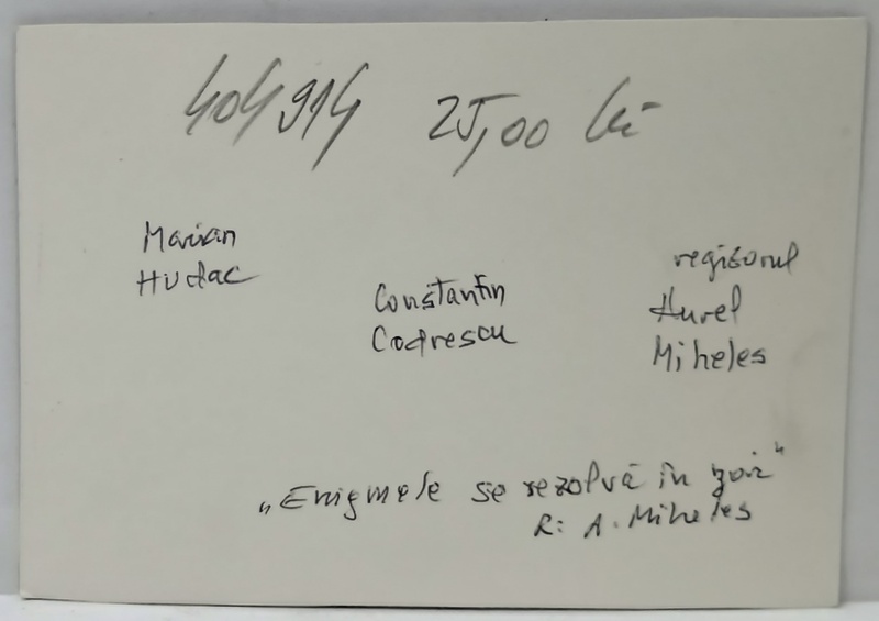 ACTORII MARIAN HUDAC , CONSTANTIN CODRESCU si REGIZORUL AUREL MIHELES , IN TIMPUL FILMARII LA ' ENIGMELE SE EXPLICA IN ZORI ' , FOTOGRAFIE , 1987