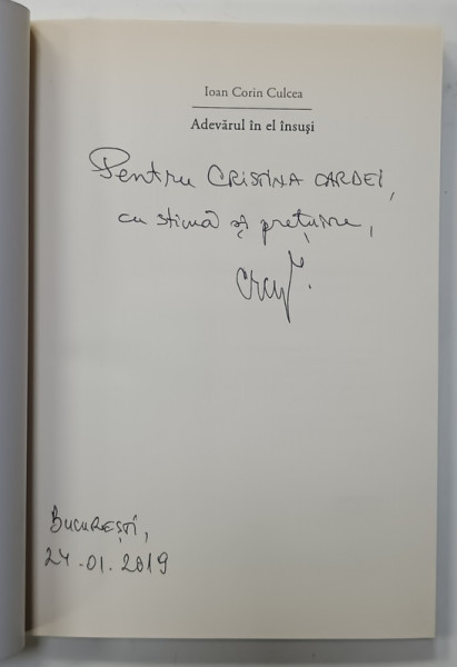 ADEVARUL IN EL INSUSI de IOAN CORIN CULCEA , POEZII , 2018 , DEDICATIE *