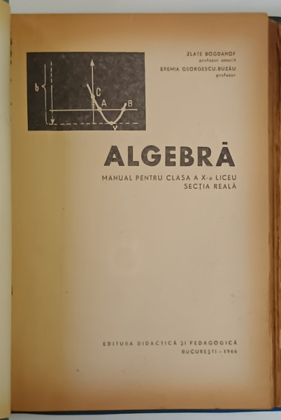ALGEBRA , MANUAL PENTRU PENTRU CLASA A X - A LICEU , SECTIA REALA de ZLATE BOGDANOF si EREMIA GEORGESCU - BUZAU , 1966