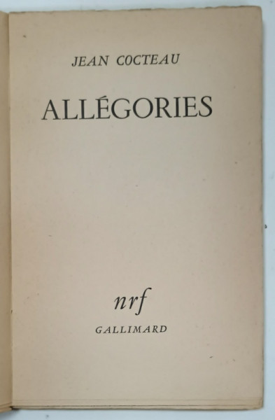 ALLEGORIES par JEAN COCTEAU , EXEMPLAR 640 DIN 1375 PE HARTIE VELIN SUPERIEUR , 1941