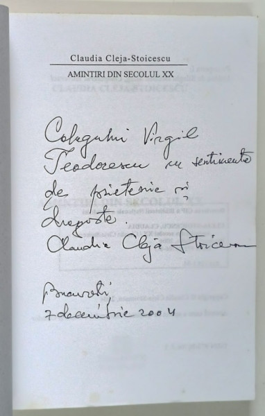 AMINTIRI DIN SECOLUL XX de CLAUDIA CLEJA STOICESCU , 2004