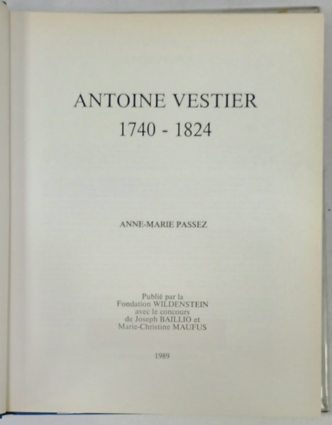 ANTOINE VESTIER 1740 -1824 par ANNE - MARIE PASSEZ , 1989