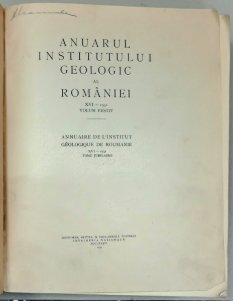 ANUARUL INSTITUTULUI GEOLOGIC AL ROMANIEI , VOLUM FESTIV , NR. XVI , 1931