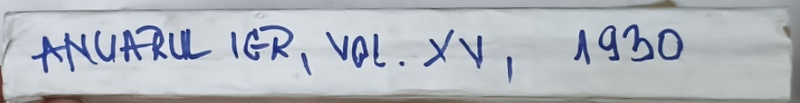 ANUARUL INSTITUTULUI GEOLOGIC AL ROMANIEI , VOLUMUL XV , 1930 , APARUTA 1931