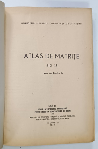 ATLAS DE MATRITE SID 13 de INGINER DUMITRU ILIE , 1980