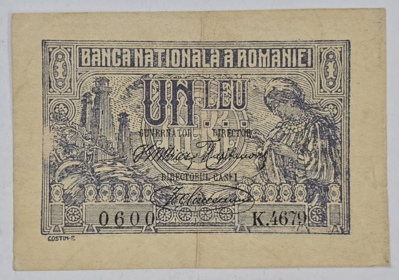 Bancnota 1 Leu 1938, circulata.
