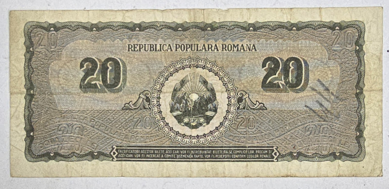 Bancnota 20 lei, RPR, 15 Iunie 1950.