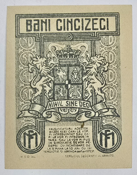 Bancnota 50 Bani 1917, necirculata.