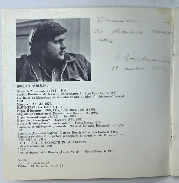 BOGDAN BARLEANU , CATALOG DE EXPOZITIE , 1982 , DEDICATIE *