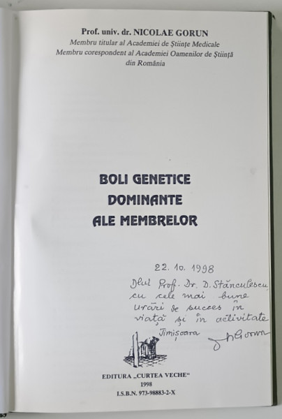 BOLI GENETICE DOMINANTE ALE MEMBRELOR de NICOLAE GORUN , 1998 *DEDICATIE
