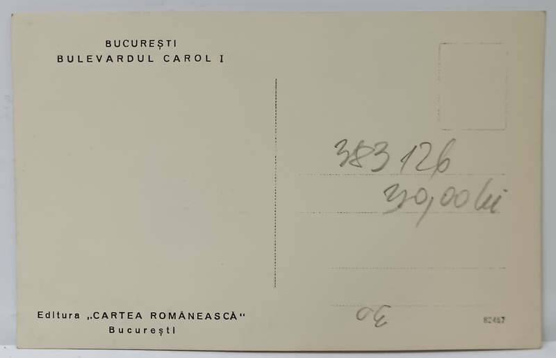 BUCURESTI , BULEVARDUL CAROL I , CARTE POSTALA ILUSTRATA , PERIOADA INTERBELICA
