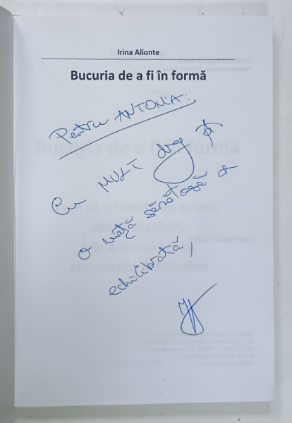 BUCURIA DE A FI IN FORMA de IRINA ALIONTE , 2021 , DEDICATIE *