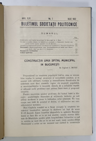 BULETINUL SOCIETATII POLITECNICE , ANUL XLVI , COLEGAT DE 6 NUMERE , IULIE - DECEMBRIE , 1932