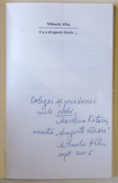 CA O DRAGOSTE TARZIE ... de MIHAELA ALBU , 2005 *DEDICATIE`
