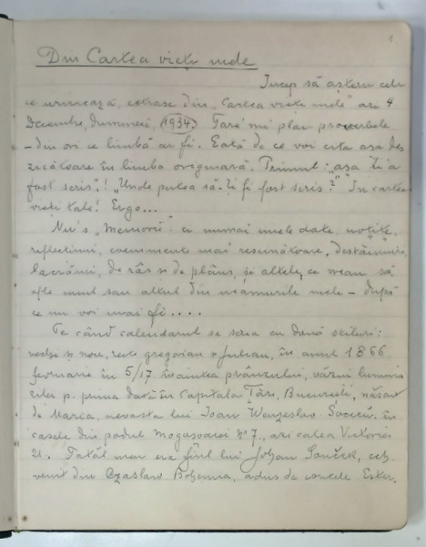 CAIET DE INSEMNARI CU SCRIS OLOGRAF ' CARTEA VIETII MELE ' , PERIOADA 1934 - 1969