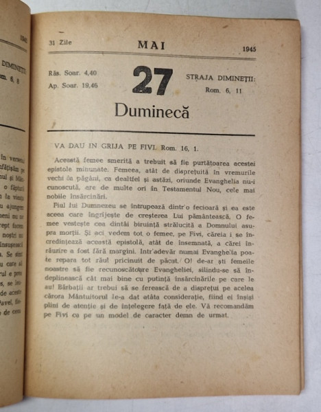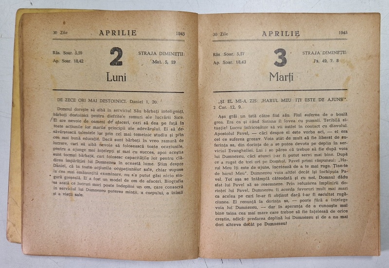 CALENDARUL CAMINULUI CRESTIN , ANUL 1945 , PREZINTA PETE SI URME DE UZURA , APARUT 1944