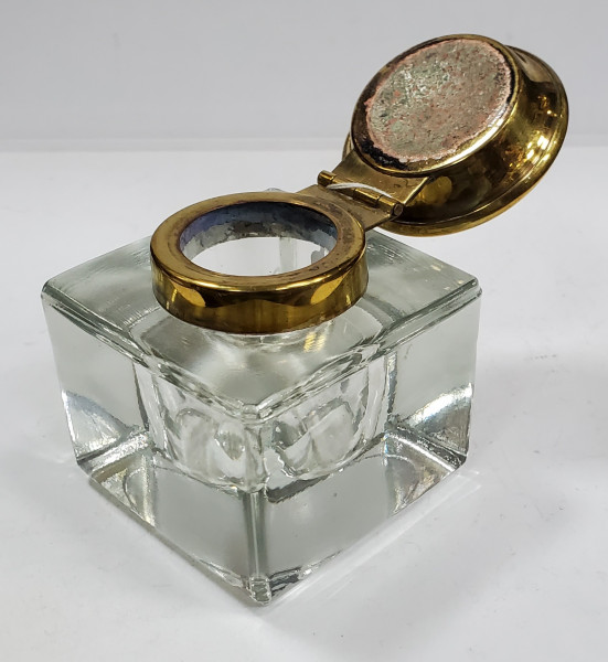 Calimara din sticla cu capac din bronz.