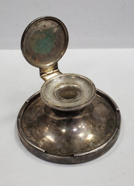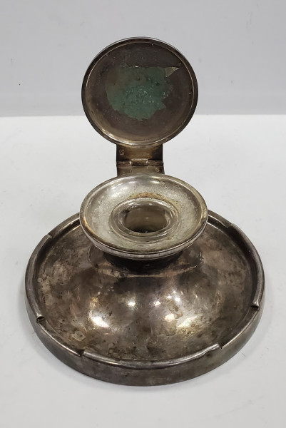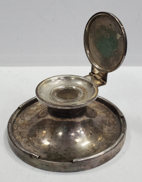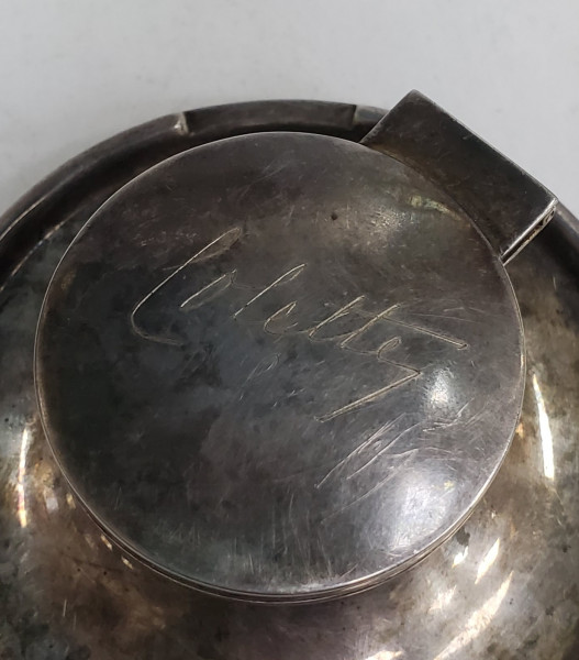 Calimara din sticla si metal argintat, gravata pe capac "Colette" (Cesianu)