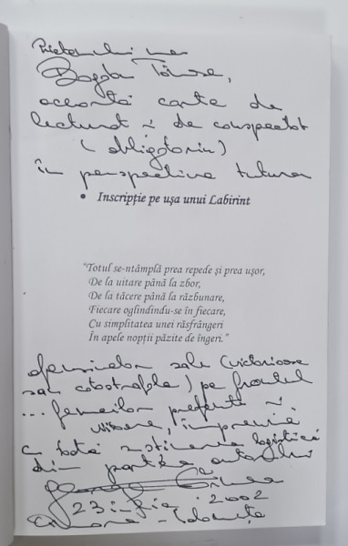 CALIMARA GOALA si GANDACUL DE BUCATARIE sau CARTEA SUAVA a IUBIRII DEFINITIVE , versuri de GEORGE TARNEA , 2001 , DEDICATIE *