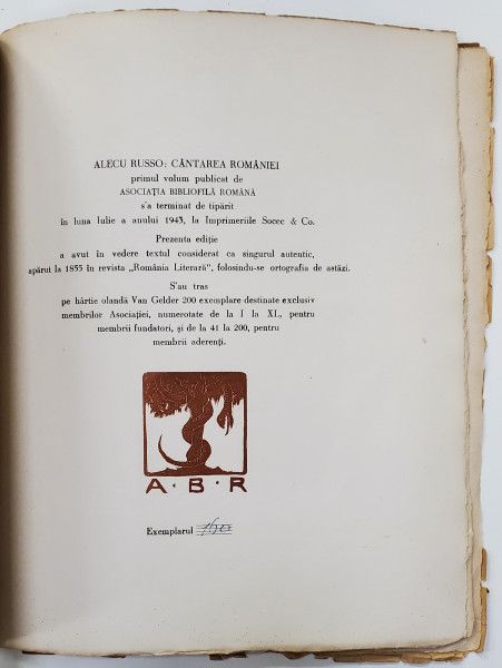 Exemplarul 160/200 pe hartie olanda Van Gelder.