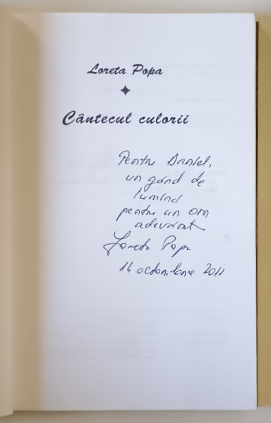 CANTECUL CULORII de LORETA POPA , 2011 *DEDICATIE