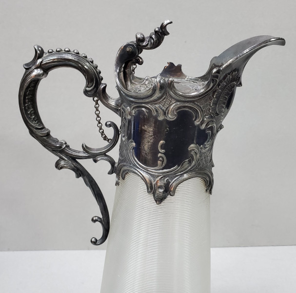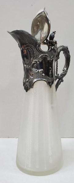 Carafa Rococo. Tehbnica: Sticla si metal argintat. H = 30 cm