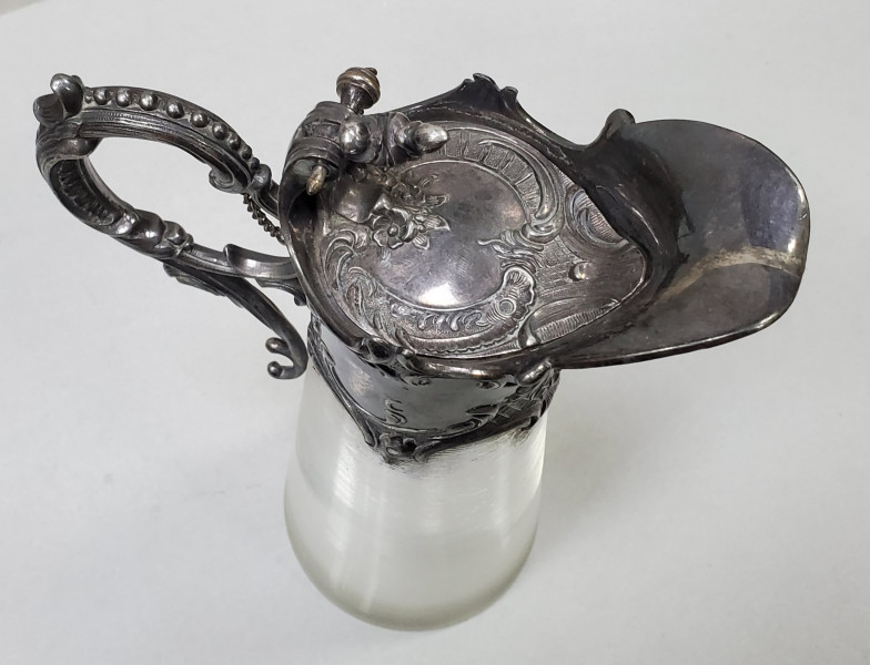 Carafa Rococo din sticla si metal argint. Secol XIX