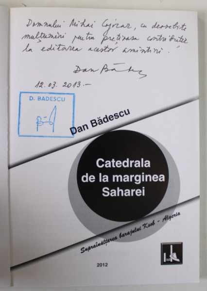 CATEDRALA DE LA MARGINEA SAHAREI , SUPRAINALTAREA BARAJULUI KSOB - ALGERIA de DAN BADESCU , 2012 *DEDICATIE