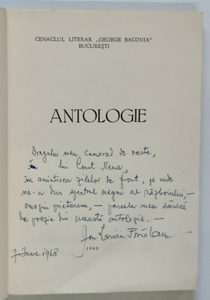 CENACLUL LITERAR GEORGE BACOVIA , ANTOLOGIE , 1968 *DEDICATIE