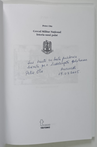 CERCUL MILITAR , ISTORIA UNUI PALAT de PETRE OTU , 2004 *DEDICATIE
