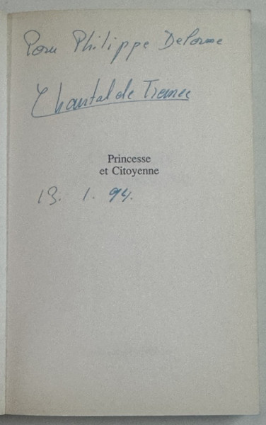CHANTAL DE FRANCE , PRINCESSE ET CITOYENNE 1994 , DEDICATIE *