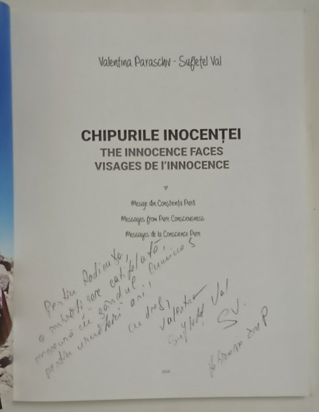 CHIPURILE INOCENTEI , MESAJE DIN CONSTIENTA PURA de VALENTINA PASRASCHIV ( SUFLETEL VAL ) , 2018 *DEDICATIE