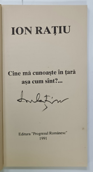 CINE MA CUNOASTE IN TARA , ASA CUM SUNT ? de ION RATIU , 1991, EXEMPLAR SEMNAT *