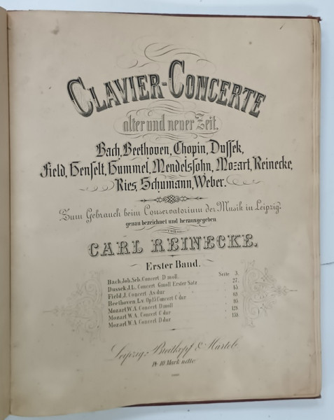 TIPARITA LA LEIPZIG , CONTINE PARTITURI GRAVATE , 195 PAGINI , LEGATURA DE EPOCA ,CU INITIALELE '' G.S.B. '' SI COROANA REGALA CU FOITA DE AUR , STARE DE CONSERVARE CONFORM FOTOGRAFIE