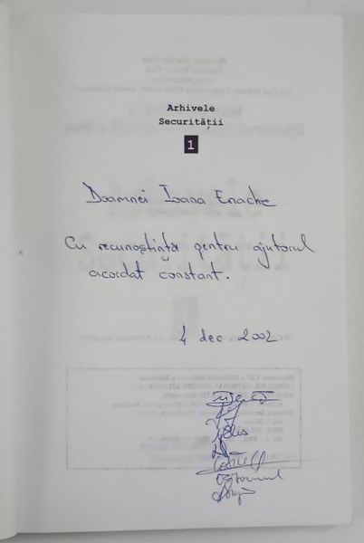 C.N.S.A.S. , ARHIVELE SECURITATII , VOLUMUL I , 2002 *DEDICATIE