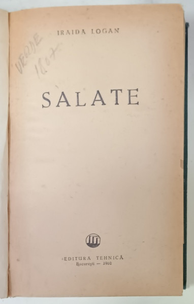 COLEGATUL CONTINE : 1. SALATE de IRAIDA LOGAN - 106 PAGINI , 2. SANDVISURI SI GUSTARI de OLGA LAZARESCU - 95 PAGINI , 3. APERITIVE de CLEMENTINA PETRA - 181 PAGINI +7 PLANSE , LEGATURA CARTONATA