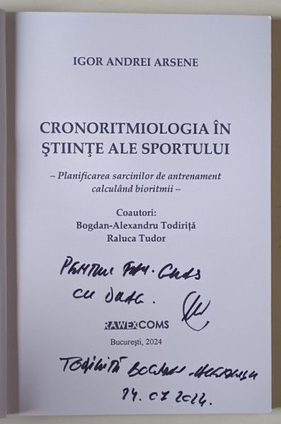 CRONORITMIOLOGIA IN STIINTELE SPORTULUI de IGOR ANDREI ARSENE ... BOGDAN - ALEXANDRU TODIRITA , 2024 *DEDICATIE