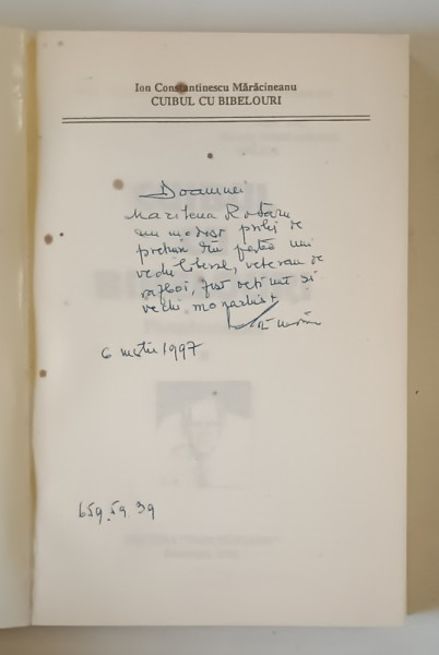 CUIBUL CU BIBELOURI , PSEUDOROMAN de ION CONSTANTINESCU MARACINEANU , 1996 *DEDICATIE