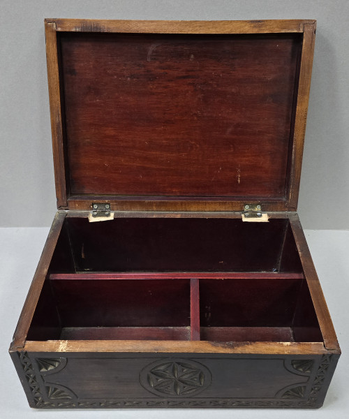 Cutie din lemn sculptata in stil neoromanesc, compartimentata.