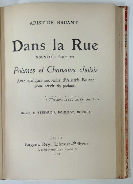 ARISTIDE BRUANT , dessins de STEINLEIN , POULBOT , BORGEX