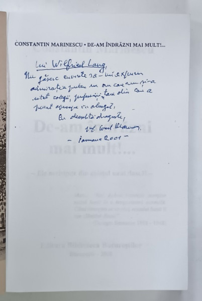 DE - AM INDRAZNI MAI MULT ! ...de CONSTANTIN MARINESCU , 2000, DEDICATIE *