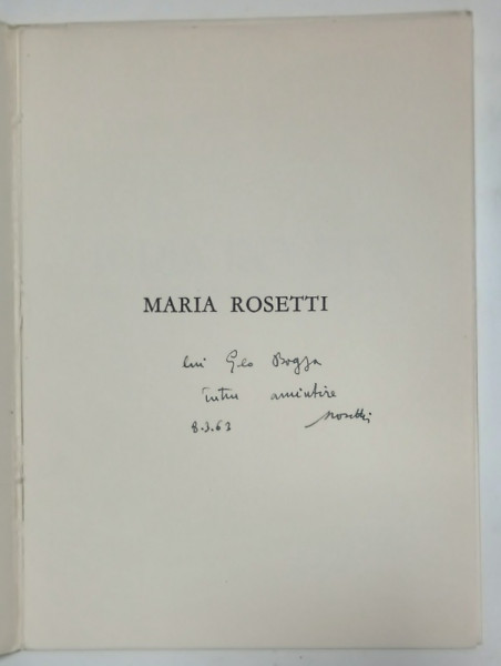 DEDICATIA LUI AL. ROSETTI CATRE GEO BOGZA PE VOLUMUL ' MARIA ROSETTI PENTRU ACEI CARE AU CUNOSCUT- O ' , 1963 , EXEMPLAR NR. 27 DIN 100 *