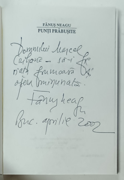 DEDICATIA LUI FANUS NEAGU PE VOLUMUL '' PUNTI PRABUSITE '' , 2002