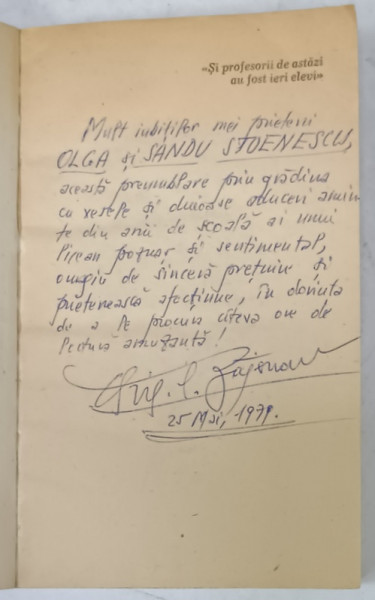 SCRISA SI SEMNATA OLOGRAF CU PIX ALBASTRU PE PAGINA DE GARDA , DATATA 25 MAI 1979 , 237 PAGINI , COPERTA BROSATA