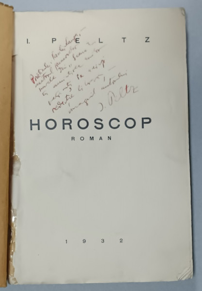 DEDICATIA LUI I. PELTZ PE VOLUMUL SAU ' HOROSCOP ' , roman , 1932