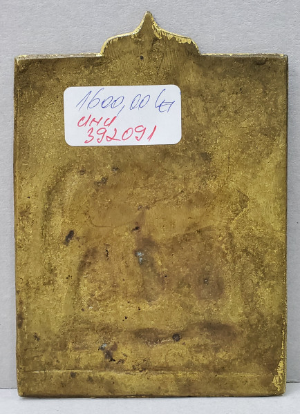 Icoana de calatorie din bronz aurit si email policrom. Dimensiuni: 14 x 10 cm