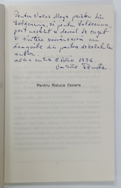 DESPRE REVELATIE , versuri de VASILE REMETE , 1996 , DEDICATIE *