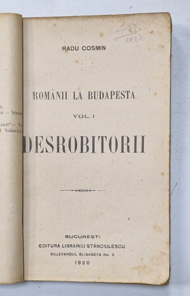 DESROBITORII , ROMANII LA BUDAPESTA de RADU COSMIN , 1920, COTOR INTARIT