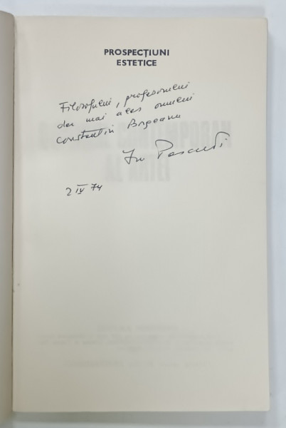 DESTINUL CONTEMPORAN AL ARTEI de ION PASCADI , 1974 , DEDICATIE *